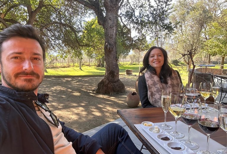 Somos Taís e Rogério, um casal de brasileiros apaixonados por gastronomia, experiências e, claro, por um excelente vinho, vivendo o privilégio de morar no Chile.